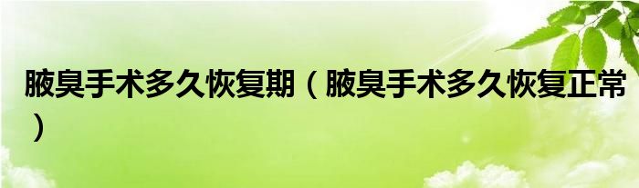 大家好,小新來(lái)為大家解答以上的問(wèn)題。腋臭手術(shù)多久恢復(fù)期,腋臭手術(shù)多久恢復(fù)正常很多人還不知道,現(xiàn)在讓我們一起來(lái)看看吧!