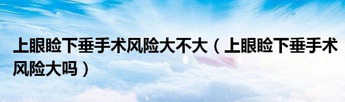 大家好,小新來為大家解答以上的問題。上眼瞼下垂手術風險大不大,上眼瞼下垂手術風險大嗎很多人還不知道,現(xiàn)在讓我們一起來看看吧!