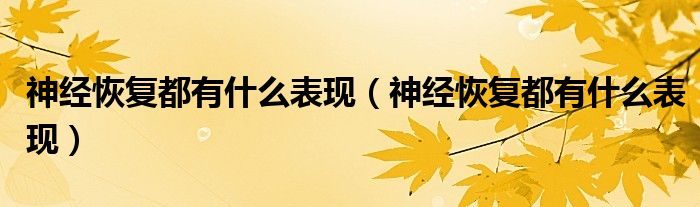 摘要大家好,小新來為大家解答以上的問題。神經(jīng)恢復(fù)都有什么表現(xiàn),神經(jīng)恢復(fù)都有什么表現(xiàn)很多人還不知道,現(xiàn)在讓我們一起來看看吧!神經(jīng)恢復(fù)的主