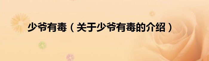 大家好,小新來為大家解答以上的問題。少爺有毒,關(guān)于少爺有毒的介紹很多人還不知道,現(xiàn)在讓我們一起來看看吧!
