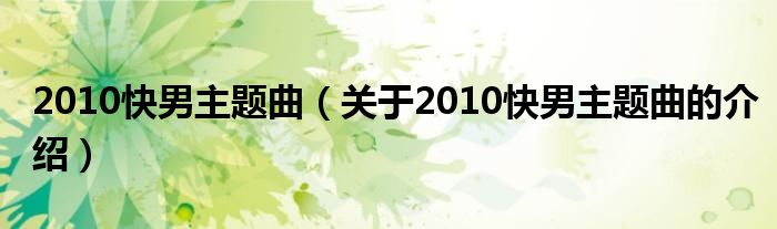 大家好,小新來為大家解答以上的問題。2010快男主題曲,關(guān)于2010快男主題曲的介紹很多人還不知道,現(xiàn)在讓我們一起來看看吧!