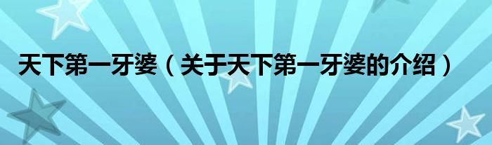 大家好,小新來為大家解答以上的問題。天下第一牙婆,關(guān)于天下第一牙婆的介紹很多人還不知道,現(xiàn)在讓我們一起來看看吧!