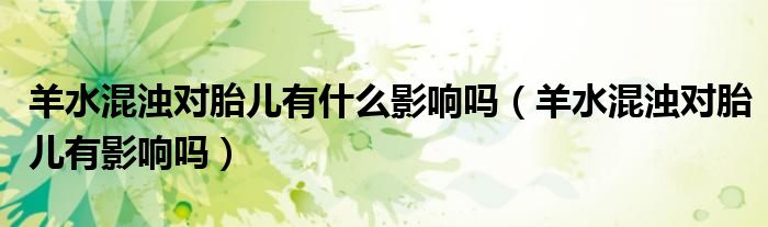 摘要大家好,小新來為大家解答以上的問題。羊水混濁對胎兒有什么影響嗎,羊水混濁對胎兒有影響嗎很多人還不知道,現(xiàn)在讓我們一起來看看吧!羊水