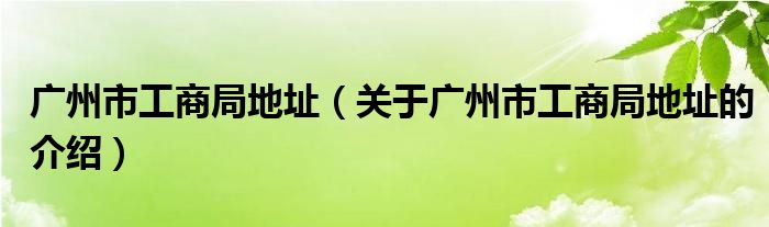 大家好,小新來為大家解答以上的問題。廣州市工商局地址,關(guān)于廣州市工商局地址的介紹很多人還不知道,現(xiàn)在讓我們一起來看看吧!