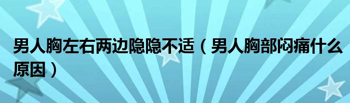 大家好,小新來為大家解答以上的問題。男人胸左右兩邊隱隱不適,男人胸部悶痛什么原因很多人還不知道,現(xiàn)在讓我們一起來看看吧!