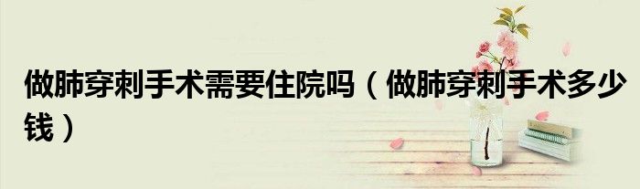大家好,小新來為大家解答以上的問題。做肺穿刺手術(shù)需要住院嗎,做肺穿刺手術(shù)多少錢很多人還不知道,現(xiàn)在讓我們一起來看看吧!