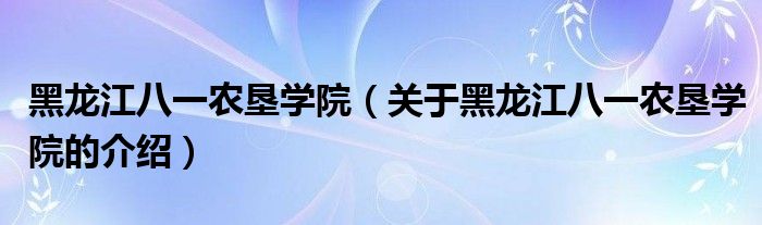 大家好,小新來為大家解答以上的問題。黑龍江八一農(nóng)墾學(xué)院,關(guān)于黑龍江八一農(nóng)墾學(xué)院的介紹很多人還不知道,現(xiàn)在讓我們一起來看看吧!
