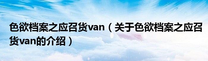 大家好,小新來為大家解答以上的問題。色欲檔案之應(yīng)召貨van,關(guān)于色欲檔案之應(yīng)召貨van的介紹很多人還不知道,現(xiàn)在讓我們一起來看看吧!