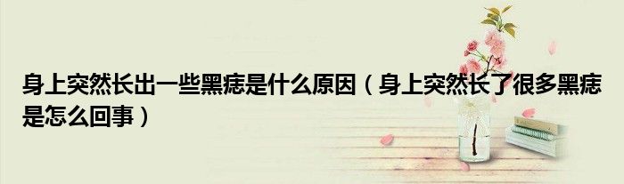 大家好,小新來為大家解答以上的問題。身上突然長出一些黑痣是什么原因,身上突然長了很多黑痣是怎么回事很多人還不知道,現(xiàn)在讓我們一起來看看吧!
