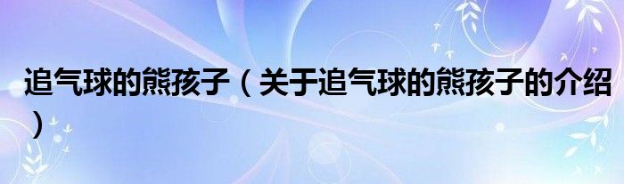 大家好,小新來為大家解答以上的問題。追氣球的熊孩子,關(guān)于追氣球的熊孩子的介紹很多人還不知道,現(xiàn)在讓我們一起來看看吧!