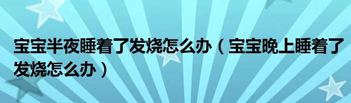 摘要大家好,小新來為大家解答以上的問題。寶寶半夜睡著了發(fā)燒怎么辦,寶寶晚上睡著了發(fā)燒怎么辦很多人還不知道,現(xiàn)在讓我們一起來看看吧!當(dāng)寶