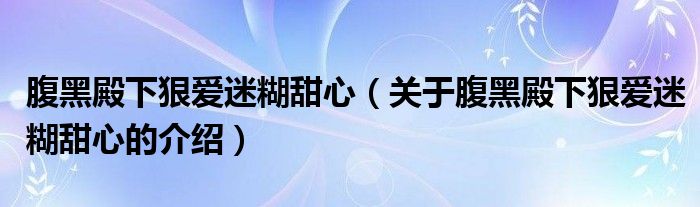 摘要大家好,小新來為大家解答以上的問題。腹黑殿下狠愛迷糊甜心,關(guān)于腹黑殿下狠愛迷糊甜心的介紹很多人還不知道,現(xiàn)在讓我們一起來看看吧!1