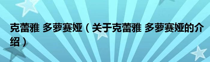 大家好,小新來為大家解答以上的問題??死傺?多蘿賽婭,關(guān)于克蕾雅 多蘿賽婭的介紹很多人還不知道,現(xiàn)在讓我們一起來看看吧!