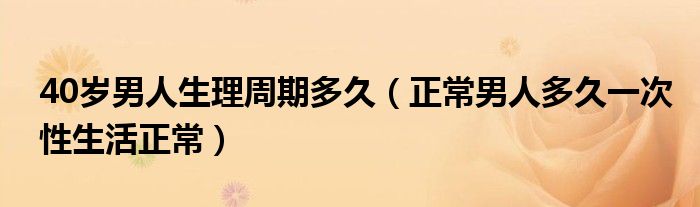 大家好,小新來為大家解答以上的問題。40歲男人生理周期多久,正常男人多久一次性生活正常很多人還不知道,現(xiàn)在讓我們一起來看看吧!