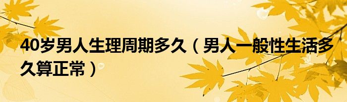 摘要大家好,小新來為大家解答以上的問題。40歲男人生理周期多久,男人一般性生活多久算正常很多人還不知道,現(xiàn)在讓我們一起來看看吧!1、在男