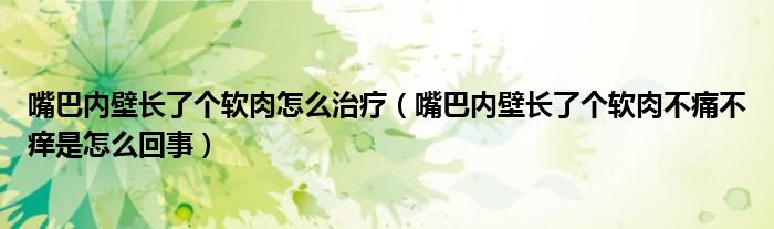 大家好,小新來為大家解答以上的問題。嘴巴內(nèi)壁長了個(gè)軟肉怎么治療,嘴巴內(nèi)壁長了個(gè)軟肉不痛不癢是怎么回事很多人還不知道,現(xiàn)在讓我們一起來看看吧!
