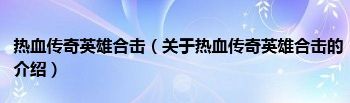 1、盛大經(jīng)營的網(wǎng)絡(luò)游戲\\u003c\\u003e中人物和所帶英雄到達(dá)43級才能共同發(fā)出的一種技能。