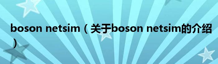大家好,小新來為大家解答以上的問題。boson netsim,關于boson netsim的介紹很多人還不知道,現在讓我們一起來看看吧!