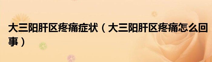 大家好,小新來為大家解答以上的問題。大三陽肝區(qū)疼痛癥狀,大三陽肝區(qū)疼痛怎么回事很多人還不知道,現(xiàn)在讓我們一起來看看吧!