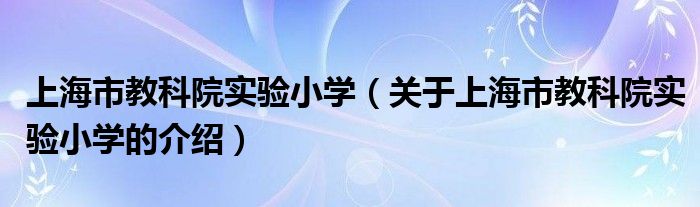 摘要大家好,小新來為大家解答以上的問題。上海市教科院實驗小學,關(guān)于上海市教科院實驗小學的介紹很多人還不知道,現(xiàn)在讓我們一起來看看吧!1