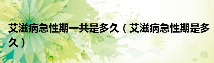 大家好,小新來為大家解答以上的問題。艾滋病急性期一共是多久,艾滋病急性期是多久很多人還不知道,現在讓我們一起來看看吧!