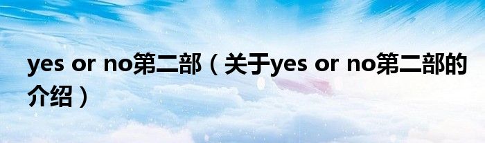 大家好,小新來為大家解答以上的問題。yes or no第二部,關(guān)于yes or no第二部的介紹很多人還不知道,現(xiàn)在讓我們一起來看看吧!