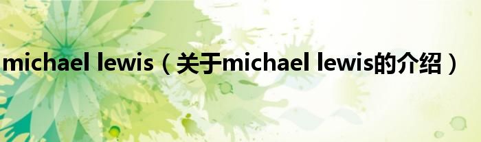 大家好,小新來為大家解答以上的問題。michael lewis,關(guān)于michael lewis的介紹很多人還不知道,現(xiàn)在讓我們一起來看看吧!
