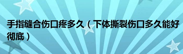 大家好,小新來為大家解答以上的問題。手指縫合傷口疼多久,下體撕裂傷口多久能好徹底很多人還不知道,現(xiàn)在讓我們一起來看看吧!
