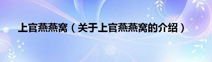 大家好,小新來為大家解答以上的問題。上官燕燕窩,關(guān)于上官燕燕窩的介紹很多人還不知道,現(xiàn)在讓我們一起來看看吧!