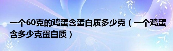 大家好,小新來(lái)為大家解答以上的問(wèn)題。一個(gè)60克的雞蛋含蛋白質(zhì)多少克,一個(gè)雞蛋含多少克蛋白質(zhì)很多人還不知道,現(xiàn)在讓我們一起來(lái)看看吧!