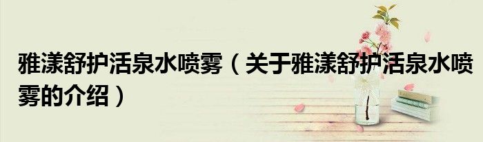 大家好,小新來為大家解答以上的問題。雅漾舒護(hù)活泉水噴霧,關(guān)于雅漾舒護(hù)活泉水噴霧的介紹很多人還不知道,現(xiàn)在讓我們一起來看看吧!