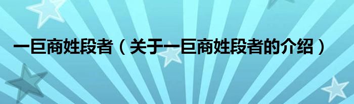 大家好,小新來為大家解答以上的問題。一巨商姓段者,關于一巨商姓段者的介紹很多人還不知道,現(xiàn)在讓我們一起來看看吧!