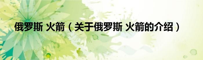 大家好,小新來為大家解答以上的問題。俄羅斯 火箭,關(guān)于俄羅斯 火箭的介紹很多人還不知道,現(xiàn)在讓我們一起來看看吧!