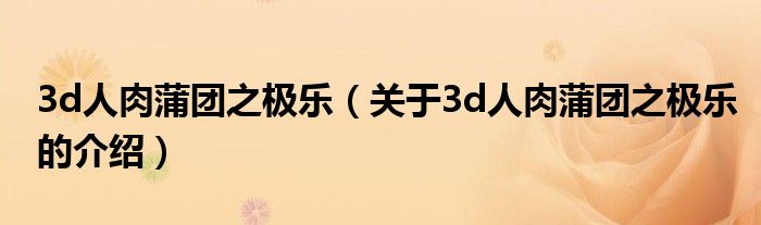 摘要大家好,小新來為大家解答以上的問題。3d人肉蒲團(tuán)之極樂,關(guān)于3d人肉蒲團(tuán)之極樂的介紹很多人還不知道,現(xiàn)在讓我們一起來看看吧!1、《肉蒲