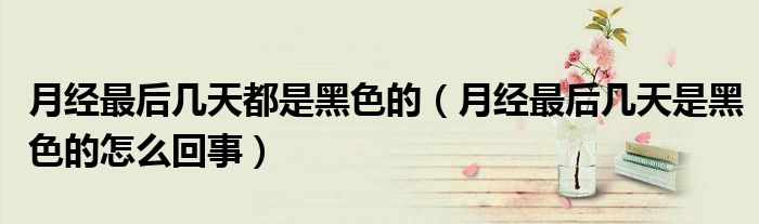 摘要大家好,小新來(lái)為大家解答以上的問(wèn)題。月經(jīng)最后幾天都是黑色的,月經(jīng)最后幾天是黑色的怎么回事很多人還不知道,現(xiàn)在讓我們一起來(lái)看看吧!月