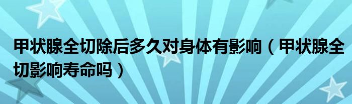 摘要大家好,小新來為大家解答以上的問題。甲狀腺全切除后多久對身體有影響,甲狀腺全切影響壽命嗎很多人還不知道,現(xiàn)在讓我們一起來看看吧!甲