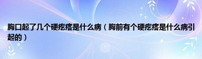 大家好,小新來(lái)為大家解答以上的問(wèn)題。胸口起了幾個(gè)硬疙瘩是什么病,胸前有個(gè)硬疙瘩是什么病引起的很多人還不知道,現(xiàn)在讓我們一起來(lái)看看吧!
