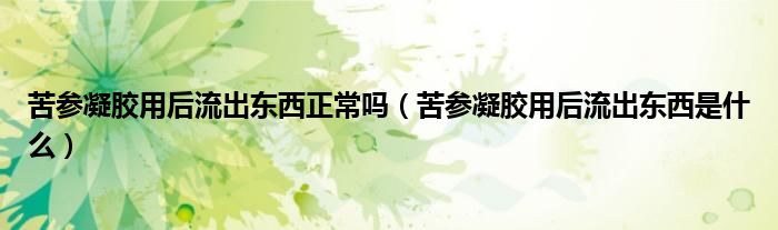 大家好,小新來為大家解答以上的問題??鄥⒛z用后流出東西正常嗎,苦參凝膠用后流出東西是什么很多人還不知道,現(xiàn)在讓我們一起來看看吧!