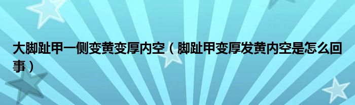 大家好,小新來為大家解答以上的問題。大腳趾甲一側(cè)變黃變厚內(nèi)空,腳趾甲變厚發(fā)黃內(nèi)空是怎么回事很多人還不知道,現(xiàn)在讓我們一起來看看吧!