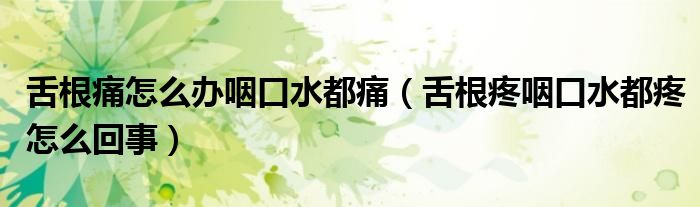 摘要大家好,小新來(lái)為大家解答以上的問(wèn)題。舌根痛怎么辦咽口水都痛,舌根疼咽口水都疼怎么回事很多人還不知道,現(xiàn)在讓我們一起來(lái)看看吧!舌根疼