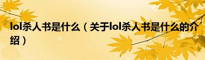 大家好,小新來(lái)為大家解答以上的問(wèn)題。lol殺人書(shū)是什么,關(guān)于lol殺人書(shū)是什么的介紹很多人還不知道,現(xiàn)在讓我們一起來(lái)看看吧!