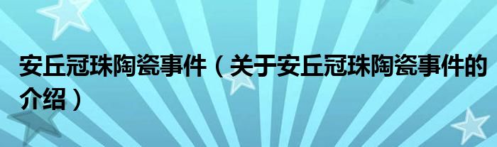 大家好,小新來為大家解答以上的問題。安丘冠珠陶瓷事件,關(guān)于安丘冠珠陶瓷事件的介紹很多人還不知道,現(xiàn)在讓我們一起來看看吧!