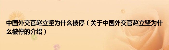 大家好,小新來為大家解答以上的問題。中國外交官趙立堅為什么被停,關(guān)于中國外交官趙立堅為什么被停的介紹很多人還不知道,現(xiàn)在讓我們一起來看看吧!
