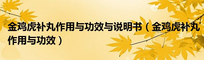 摘要大家好,小新來為大家解答以上的問題。金雞虎補丸作用與功效與說明書,金雞虎補丸作用與功效很多人還不知道,現(xiàn)在讓我們一起來看看吧!金雞