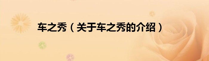 大家好,小新來(lái)為大家解答以上的問(wèn)題。車(chē)之秀,關(guān)于車(chē)之秀的介紹很多人還不知道,現(xiàn)在讓我們一起來(lái)看看吧!
