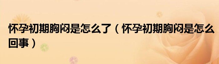 大家好,小新來為大家解答以上的問題。懷孕初期胸悶是怎么了,懷孕初期胸悶是怎么回事很多人還不知道,現(xiàn)在讓我們一起來看看吧!