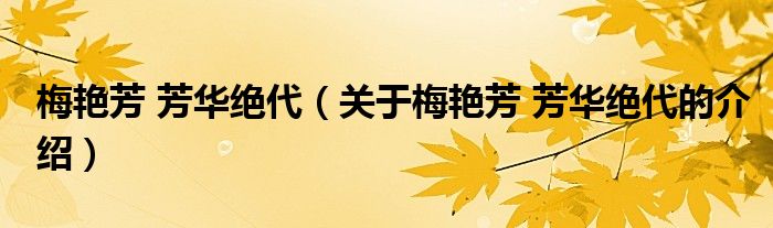 大家好,小新來為大家解答以上的問題。梅艷芳 芳華絕代,關(guān)于梅艷芳 芳華絕代的介紹很多人還不知道,現(xiàn)在讓我們一起來看看吧!