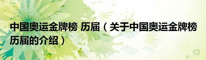 摘要 大家好,小新來為大家解答以上的問題。中國奧運金牌榜 歷屆,關(guān)于中國奧運金牌榜 歷屆的介紹很多人還不知道,現(xiàn)在讓我們一起來看看吧!1