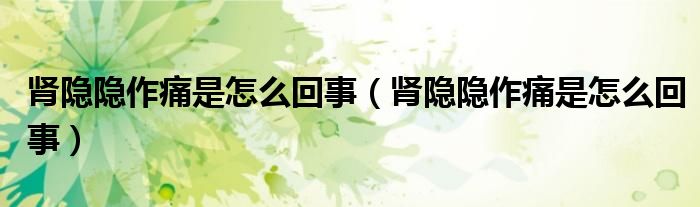 大家好,小新來(lái)為大家解答以上的問(wèn)題。腎隱隱作痛是怎么回事,腎隱隱作痛是怎么回事很多人還不知道,現(xiàn)在讓我們一起來(lái)看看吧!