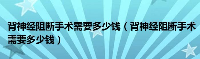 大家好,小新來為大家解答以上的問題。背神經(jīng)阻斷手術(shù)需要多少錢,背神經(jīng)阻斷手術(shù)需要多少錢很多人還不知道,現(xiàn)在讓我們一起來看看吧!